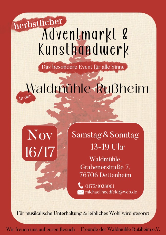 ![]() | Download Einladung zum herbstlichen Advents- und Kunsthandwerkermarkt 2024 herbstlicher_Advent-2024.jpg (192.11KB) |